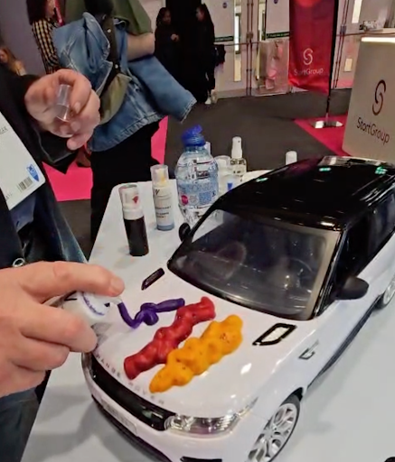 Also on stand, we featured a mini car wash to showcase our range of Addpol® polymeric non-staining dye colourants, inviting people to cover our little white car in brightly coloured foams and see how easily they wash off. Loads of visual impact, no staining!
